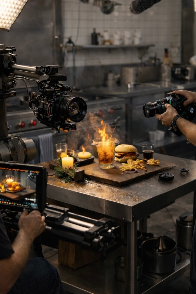 High-end AI-driven cinematic tabletop visuals and behind-the-scenes filmmaking for food, beverage and hospitality brands.